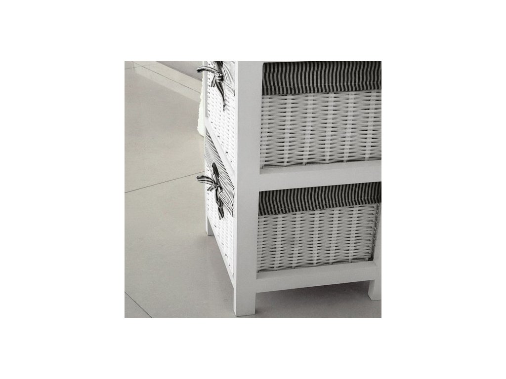 Regál s košíčky v elegantním venkovském stylu vám poslouží jako praktický úložný prostor v koupelně, kuchyni nebo ložnici. 3 vyjímatelné koše vyrobené z polyratanu vám nabízejí spoustu úložného prostoru a jsou také podšity vyjímatelnými, pratelnými látkovými vložkami. Regál ve venkovském stylu je vyroben ze dřeva.