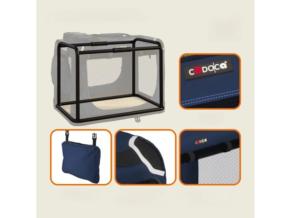 Vnitřní část tašky je vybavena měkkou dekou, která poskytuje vašemu mazlíčkovi pohodlné a útulné místo k odpočinku. Velké síťované panely na všech čtyřech stranách zabezpečují dostatečné větrání a přívod vzduchu. Horní, přední a boční otvory se zipy umožňují snadný přístup dovnitř i ven. Dvě prostorné kapsy jsou ideální pro uskladnění pamlsků a hraček během výletů k veterináři nebo na dovolenou. Díky skládací ocelové konstrukci lze tašku rychle složit a rozložit, což usnadňuje její uskladnění a šetří místo. Taška je vyrobena z odolného materiálu 600D Oxford, který je snadno udržovatelný. Deku se suchým zipem lze snadno odstranit a prát při 30°C. Díky kvalitnímu zpracování Vám a Vašemu čtyřnohému příteli tato taška poskytne dlouhodobé potěšení.Výhody produktu: