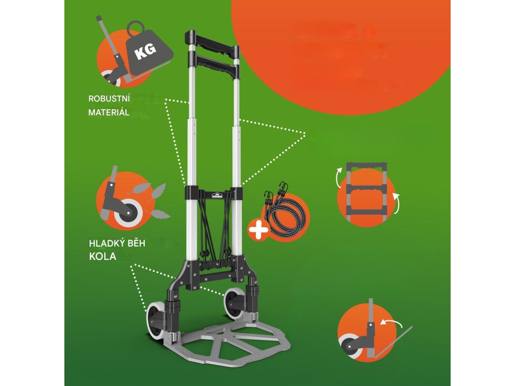 Ať už se stěhujete, pracujete v zahradě nebo provádíte domácí práce, tento vozík je ideálním řešením pro snadnou přepravu balíků, krabic, květináčů či přepravek s nápoji. Díky své robustní konstrukci zvládne náklad až 80 kg. Výškově nastavitelný rám ručního vozíku vám umožňuje přizpůsobit velikost přepravního vozíku vaší výšce. Jeho nízká hmotnost a dvě hladce se pohybující kolečka usnadňují pohyb.Výhody produktu: