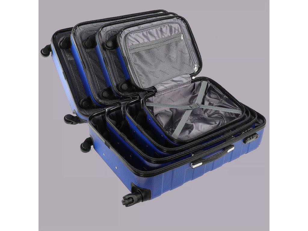 Sada 4 cestovních kufrů nabízí čtyři praktické velikosti, takže si vždy můžete vybrat ten správný kufr na služební cestu nebo rodinnou dovolenou. Pevný plášť z ABS plastu chrání obsah před nárazy a namáháním během přepravy. Vnitřní uspořádání s přihrádkami a elastickými pásky pomáhá udržet věci v pořádku a vaše věci na místě, i při delších cestách.