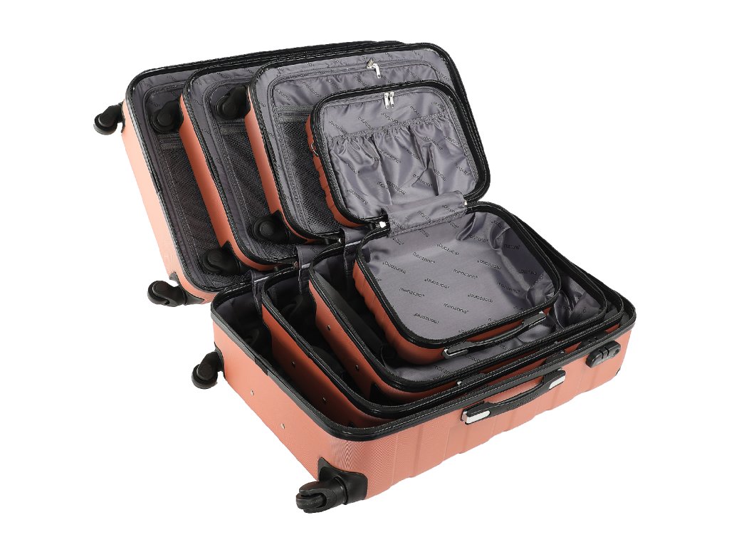 Sada cestovních kufrů je navržena pro bezpečné a přehledné uložení vašich věcí na cestách. Díky různým velikostem kufrů si vždy můžete vybrat ten správný pro víkend, služební cestu nebo dlouhou dovolenou. Pevné tělo z ABS plastu poskytuje ochranu proti nárazům a zároveň se snadno manipuluje. Vnitřní upevňovací popruhy pomáhají udržet oblečení a další předměty bezpečně na místě.