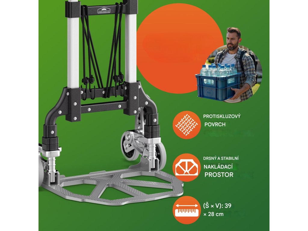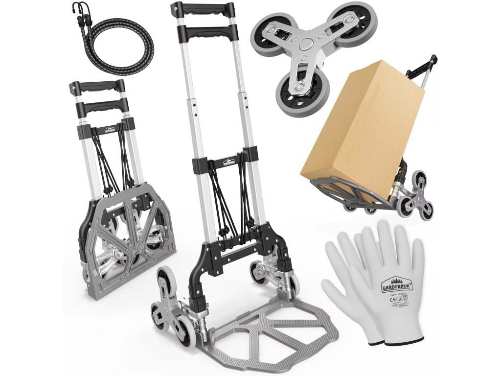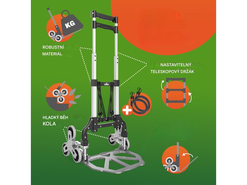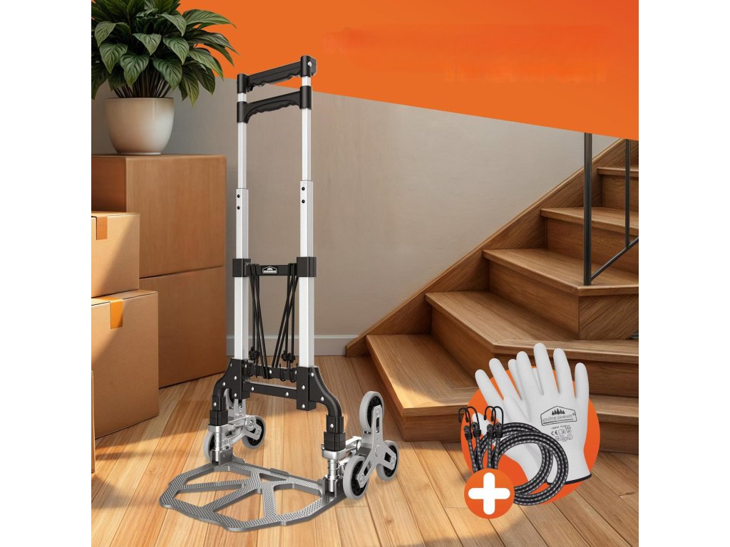 Ať už se stěhujete, pracujete v zahradě nebo provádíte domácí práce, schodišťový vozík je ideálním řešením pro snadnou přepravu balíků, krabic, květináčů či přepravek s nápoji. Díky své robustní konstrukci zvládne náklad až do 80 kg, přičemž při výstupu po schodech je nosnost až 40 kg.Schody už nejsou překážkou noklik je vybaven šesti kolečky s tvrdými gumovými pneumatikami, které zajišťují hladký pohyb i po schodišti. Rám je vyroben z pevné trubkové oceli a je výškově nastavitelný, takže se snadno přizpůsobí vaší postavě.Další výhodou je teleskopická rukojeť pro snadné ovládání, nízká hmotnost a šest hladce se pohybujících koleček. V balení naleznete také expandérová lana a ochranné rukavice, které vám zpříjemní a usnadní manipulaci s nákladem.Výhody produktu: