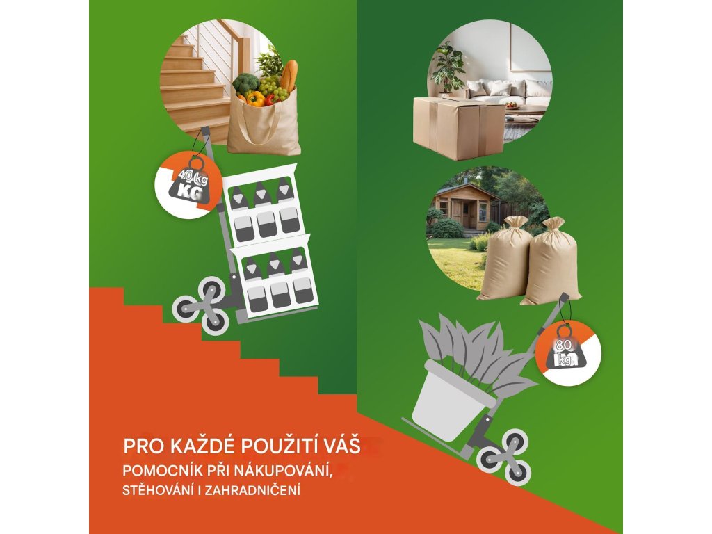 - Nosnost: Max. 80 kg, pro schody 40 kg