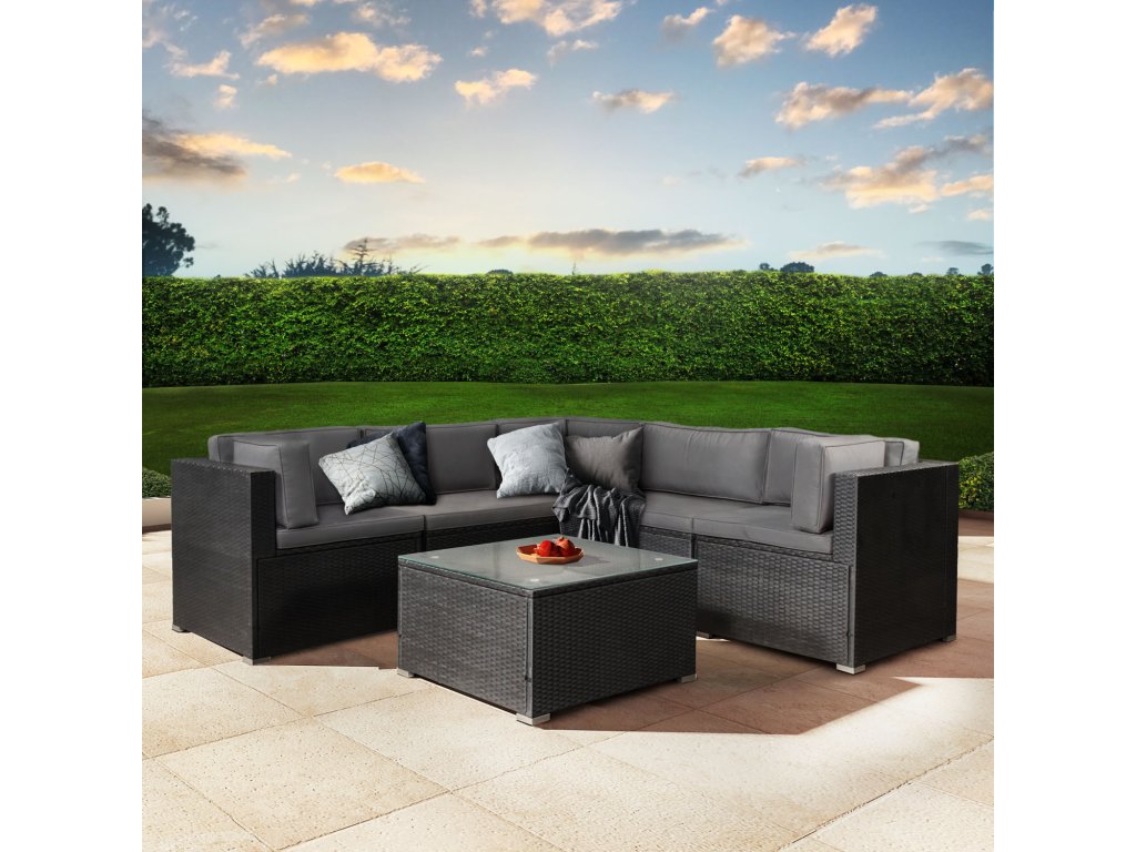 Se zahradní sestavou Nassau proměníte svůj venkovní prostor ve stylové místo k odpočinku. Ať už na terase, balkoně nebo v zimní zahradě – tento zahradní set je skutečným poutačem pozornosti. Na velkém sedacím prostoru s pohodlnou výškou sedáku 40 cm se vejde až 5 osob. Součástí sestavy je stůl se skleněnou deskou, který nabízí dostatek místa na nápoje a občerstvení. Vícevrstvá ocelová konstrukce dodává zahradnímu nábytku vysokou úroveň stability. Polyrattan je ideální outdoorový materiál. Splétaný materiál je naprosto necitlivý na déšť, sníh a extrémní teplo, je odolný vůči povětrnostním vlivům a má dlouhou životnost. Vysoká elasticita umožňuje pohodlné sezení i bez polštářů. 7 cm silné podušky a 20 cm hrbé zádové polštáře se postarají o pohodlí. Potahy podušek jsou opatřeny zipem a lze je rychle a snadno vyjmout. Potahy pak lze prát na 30 stupňů.