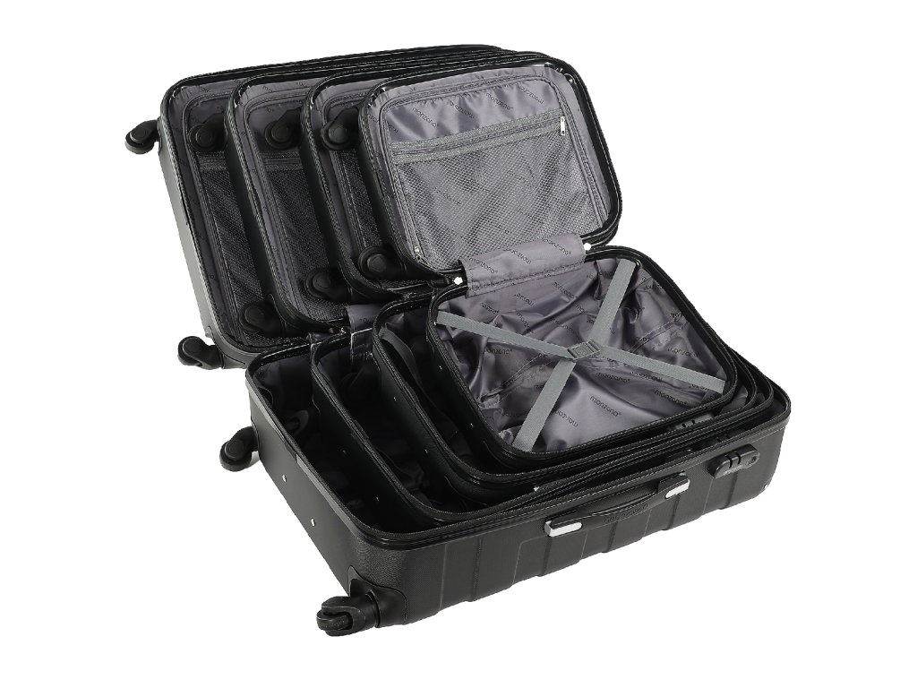 Set 4 ks cestovních kufrů nabízí čtyři praktické velikosti, díky čemuž si vždy vyberete vhodný kufr pro služební cestu i rodinnou dovolenou. Pevná skořepinová konstrukce z ABS plastu chrání obsah před nárazy a zatížením během přepravy. Vnitřní uspořádání s přihrádkami a elastickými popruhy pomáhá udržet pořádek a vaše věci zůstanou na svém místě i při delším cestování.