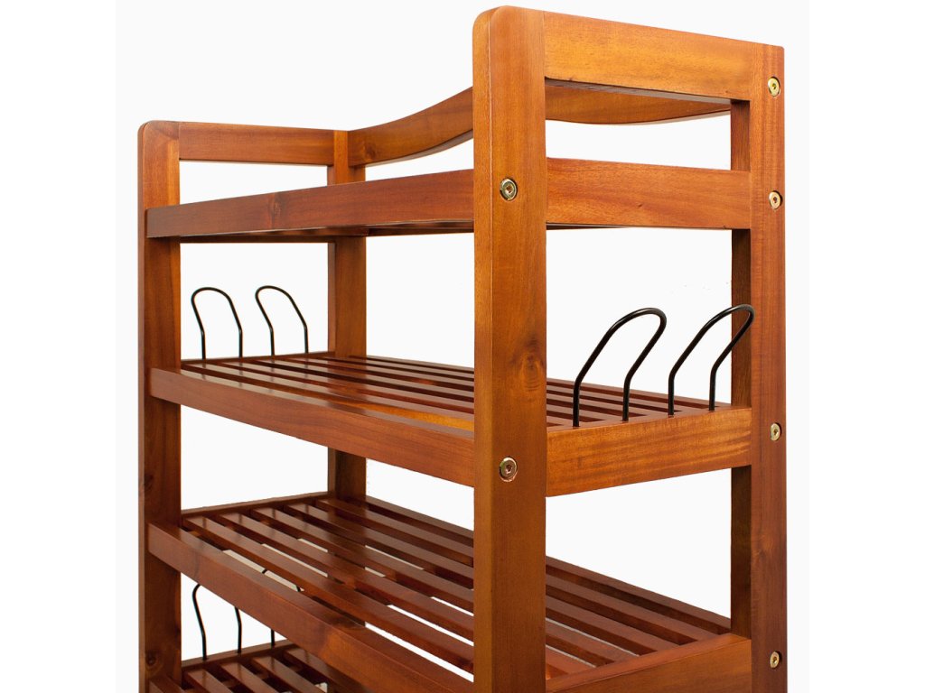 Tento kvalitní stojan na boty v koloniálním stylu nabízí dostatek prostoru pro vaši obuv a zároveň je vkusným doplňkem interiéru. Je ideální nejen na boty, ale také jako knihovna, úložná police do kuchyně či koupelny. Boční kovové držáky poskytují extra místo pro boty a lze je podle potřeby odstranit. Díky tomu můžete na stojan uložit až 30 párů obuvi. Stabilitu zajišťuje pevná dřevěná konstrukce s pěti odolnými policemi a příčnými výztuhami. Při rovnoměrném zatížení unese až 200 kg. Stojan na boty lze navíc rychle a jednoduše sundat.