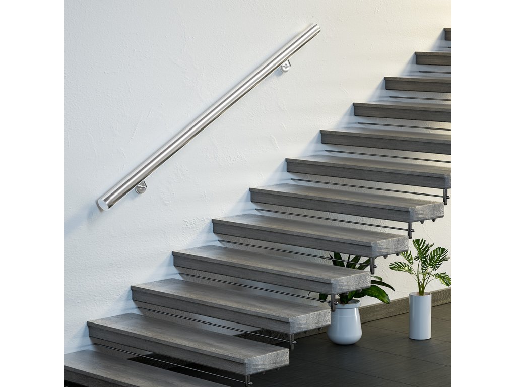 Elegantní zábradlí z nerezové oceli V2A opticky zvýrazňuje vaše schody. Nerezová ocel je stabilní a proto velmi odolná vůči povětrnostním vlivům. Systém upevnění na stěnu zaručuje správný úhel ke stěně.