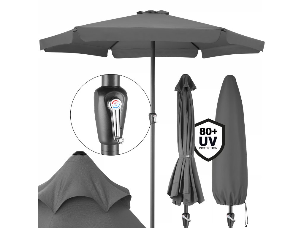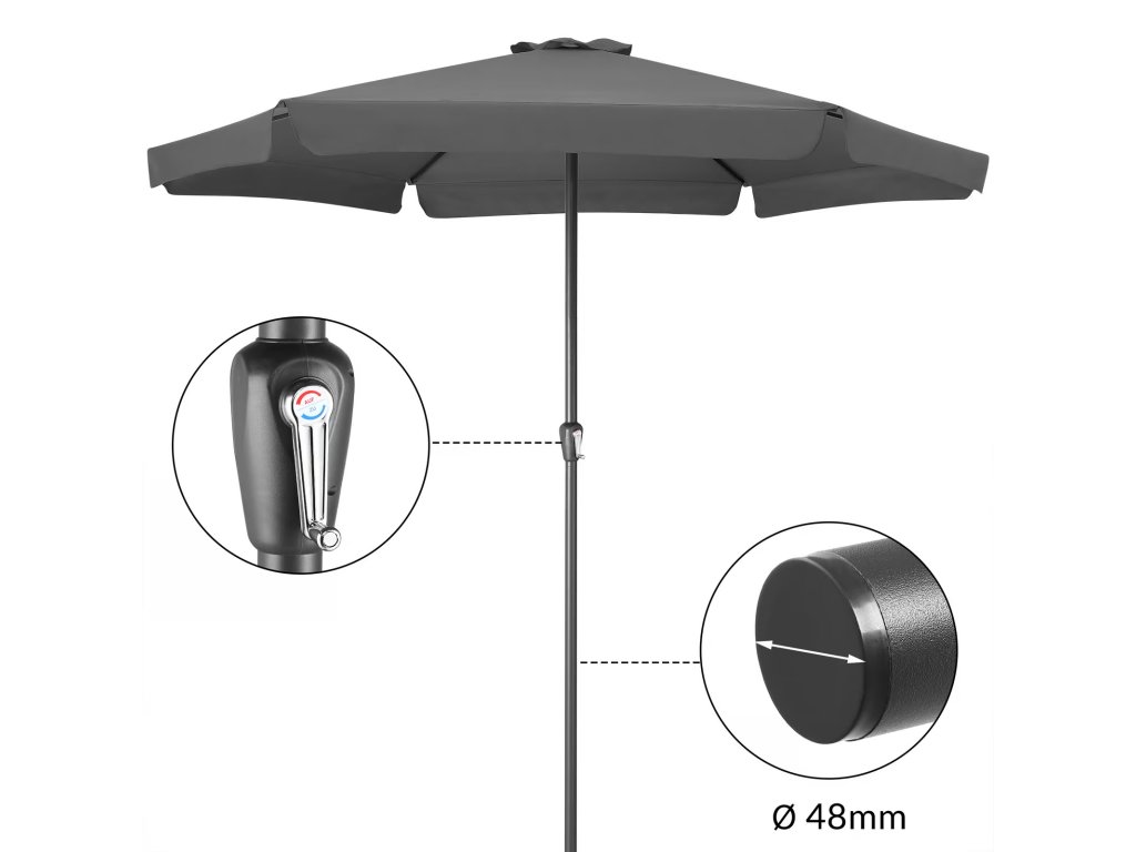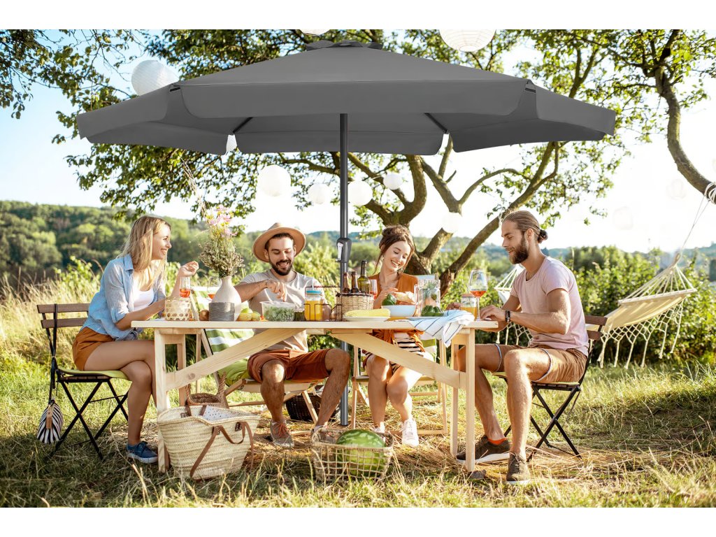 Zahradní slunečník je ideální volbou pro terasy, balkony, zahrady nebo venkovní posezení. Díky svému velkému průměru poskytuje dostatek stínu pro celou rodinu a vytváří pohodlné a chráněné místo k odpočinku během horkého léta.